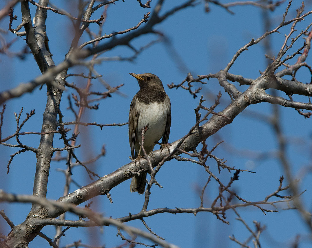 Beskrivelse: Selv om der efterhånden er et hav af Sortstrubede Drossel billeder på Netfugls Galleri, er undertegnede endnu ikke træt af at studere dem. Det er en fascinerende fugl - en fugl som mange danskere efterhånden har et kendskab til; ikke mindst efter sidste års fugle i nordsjælland og jylland. Især hannerne i sommerdragt er nydelige... Det er også en fugl, som gør sig bemærket i det centralasiatiske landskab. Specielt i træktiderne. Et varierende antal fugle overvintrer - endnu færre er ynglefugle i bjergene. Antallet fluktuerer. Men sjældne er de aldrig i træktiderne -nærmest uanset hvor man befinder sig i det åbne landskab ultimo marts og medio oktober støder man på SD - som regel flokke! Sædvanligvis 20-40 fugle, men langt større flokke er oplevet. De er også ganske højrøstede... jeg erindrer endnu diskussionen om hvorvidt SD egentlig havde et artsspecifikt kald eller ej - det var da universitetsfuglen i København havde indfundet sig. Understreget med TYKT - SD har et artsspecifikt kald (omend jeg ikke umiddelbart ved om det kan adskilles fra T. ruficollis - dem er der nemlig ikke mange af i Centralasien). S.D har to artsspecifikke kald - kontaktkald og trækkald. Og de høres flittigt fra overtrækkende fugle og fouragerende flokke. SD har det med at opføre sig forbavsende sky - lister rundt i skjul af buske, eller står stille i skyggen af en sten/busk i halve timer (kendt adfærd fra flere af de danske vintergæster) og gør intet væsen af sig. Omvendt er de nogle gange forbavsende tillidsfulde - og samme individer. Måske er det ikke mennesker de er sky ved... Befinder man sig ude i det åbne landskab i slutningen af marts - som i år 2011 - er der masser at opleve. Selvfølgelig krydrer de SDrosler oplevelserne, men når de garneres med Stor Sorthovedet Måge, overtrækkende Jomfrutraner og gransangere ssp tristis, ja så er dagen god. Og hvis noget så eksotisk som et par Strandskader kommer forbi er det lidt dansk - de er sjældne i Centralasien. Trådte også en bunke bekkasiner op, da jeg vadede mig en sok til... ingen mørke undervinger eller særegen flugt - endsige noget som helst andet en DBekkasin-lignende jizz. Meeen - mon ikke de skal nærkigges lidt bedre - der må være Sibes i den størrelsesorden på disse kanter. Foråret er en god tid - også her. Og efter de sidste ugers fantastiske nyhed om at reintroducere den Kaspiske Tiger (Turan) i form af den genetisk identiske Sibiriske Tiger, et langspyt fra Bishkek - hovedstaden i Kirgisistan, bliver det ekstra sjovt at drage tild et sydlige kasakhstan de kommende år. Ret beset er der planer om at udsætte dem i Ili-deltaet en halv dags kørsel vest for Almaty, Kasakhstan. "Gamle" KAKI-birdere der kender Turenga-skoven og Karaoi (Sykes's capital) og har badet i Ili-floden vil vide at området hvor Tigerne planlægges udsat, ligger umiddelbart syd for Karaoi i det store delta som dannes ved udløbet i Lake Balkash. En perfekt biotop - også for Tiger. RET VILDT! God Påske VH/Michael, Bishkek 15.april 2011