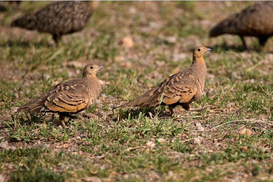 Beskrivelse: Bemærk forskellen i tegning på de to fugle. Er det forskellen mellem frisk og slidt dragt eller forskellen mellem yngre og ældre fugl?