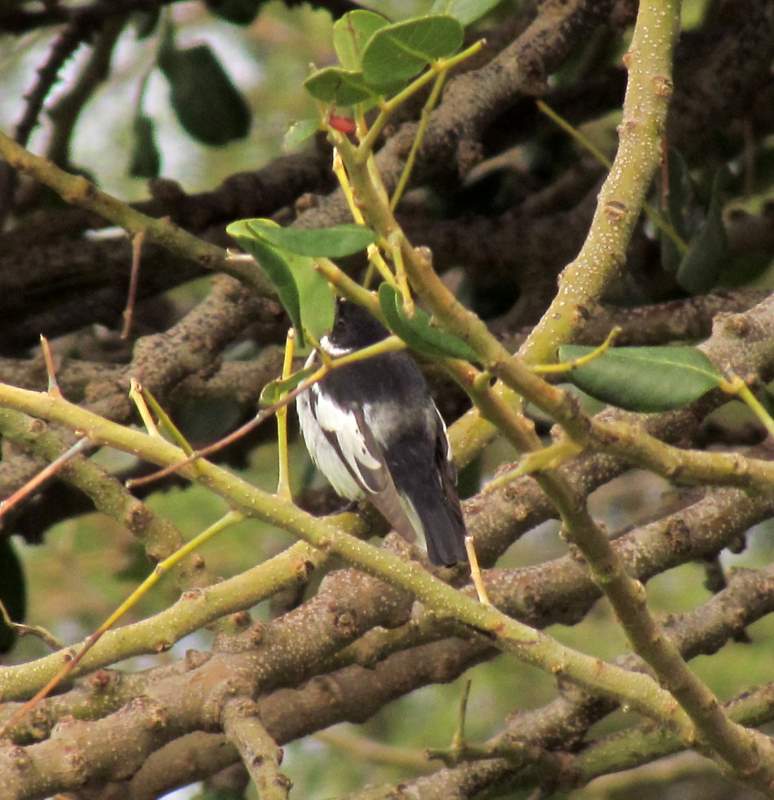 Beskrivelse: Et godt fald af fluesnappere på campingpladsen ved Baths of Aphrodite indeholdt en enkelt Broget Fluesnapper, 20-25 Hvidhalsede Fluesnappere og endelig 3 Balkanfluesnappere. Denne Balkanfluesnapper var den eneste som holdt sig bare nogenlunde i ro, men sad ofte halvgemt. Det lyse vingebånd på de mellemste dækfjer og hvidsmudsige overgump ses her.