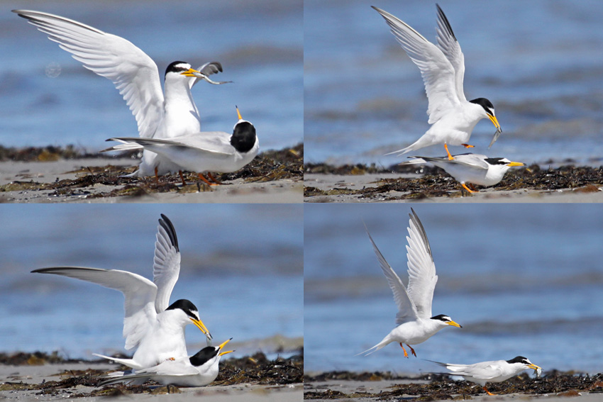 Hvad du ikke kan se, det er, at hannen i et lille minnut gik rundt om hunnen og viftede den om næbbet med denne dejlige, blanke fisk. Omsider var hunnen motiveret og inviterede til parring. Også under parringen dinglede den dejlige fisk for øjnene af hunnen. Først idet hannen lettede fra hunnens ryg, afleverede den godbidden, som øjeblikkeligt blev slugt. Sådan!
