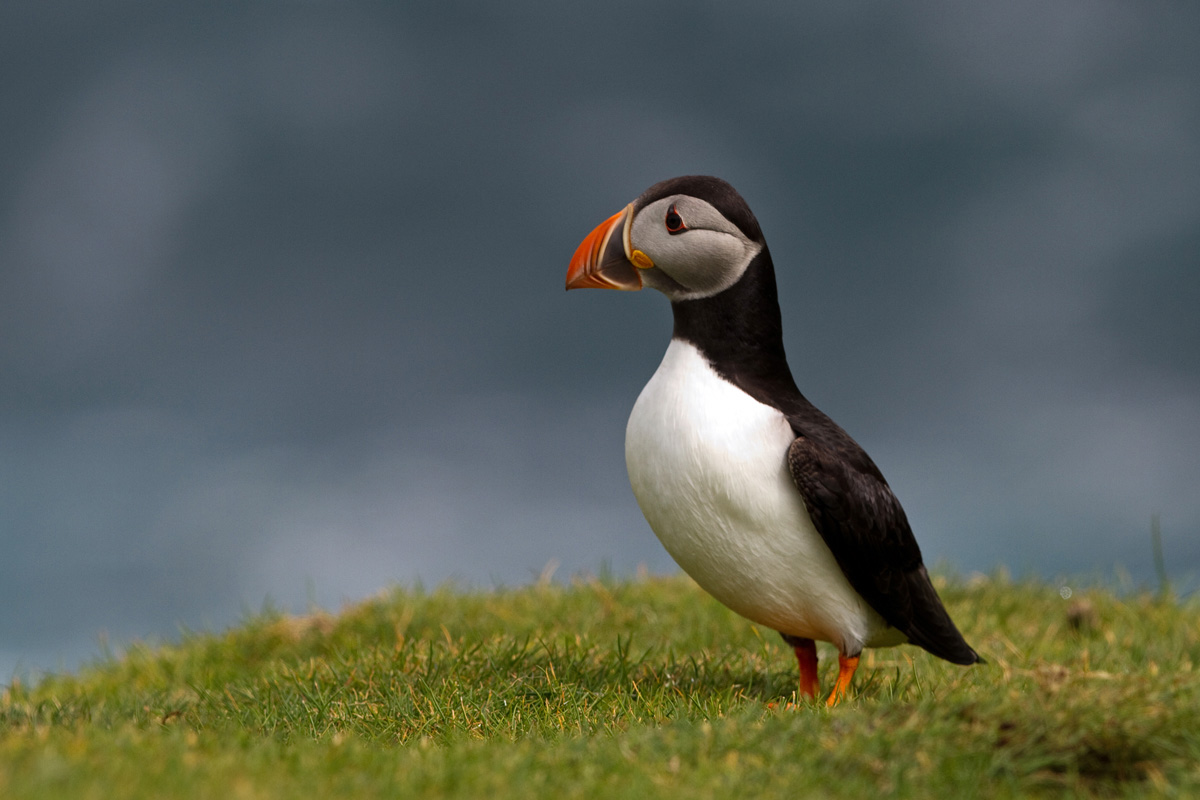 Beskrivelse: Lunde fotograferet på Mykines nær mindestenen for omkomne på øen