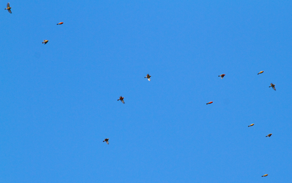 Beskrivelse: Invasion af Hvidvinget Korsnæb. Her ved Nordmandshage, Hals, Nordjylland. 13 fugle ud af en flok på 17. Obset af Palle A.F. Rasmussen, Aalborg. 67 stk. Hvidvinget Korsnæb observeret inden kl. blev 10:00.