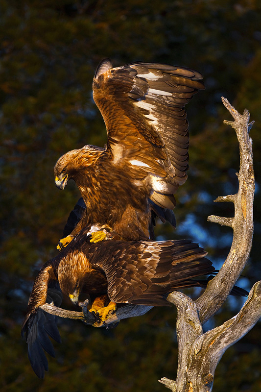 Beskrivelse: Under et besøg februar, 2011 i Conny Lundströms skjul var jeg så heldig at overvære en parring af Kongeørn-parret der holder til i reviret hvor skjulet er placeret.