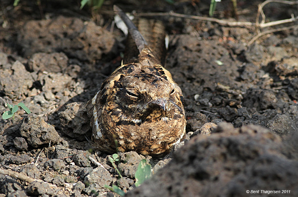 Star-spotted Nightjar lå iøvrigt blot to meter fra en Slender-tailed Nightjar (C. clarus), der er almindelig omkring Lake Baringo.