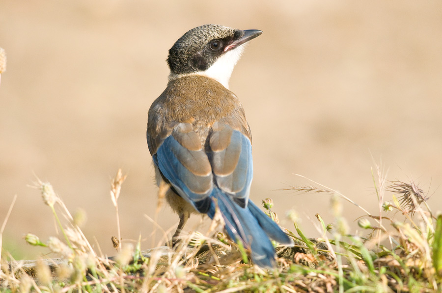 Beskrivelse: Bemærk lyserød mundvig, hvis den havde åbnet næbbet ville man se at den var rød i gabet, hvor en adult vil være sort i gabet. Endvidere brune armsvingfjer og gråmelleret isse. Halefjerene er heller ikke fuldt udvoksede.