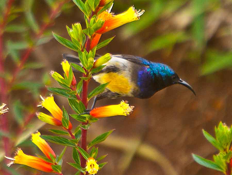 Variable Sunbird kaldes undertiden Yellow-bellied Sunbird jfr. fotografens Titel/info. Det er dog ikke alle artens racer, der er gulbugede.