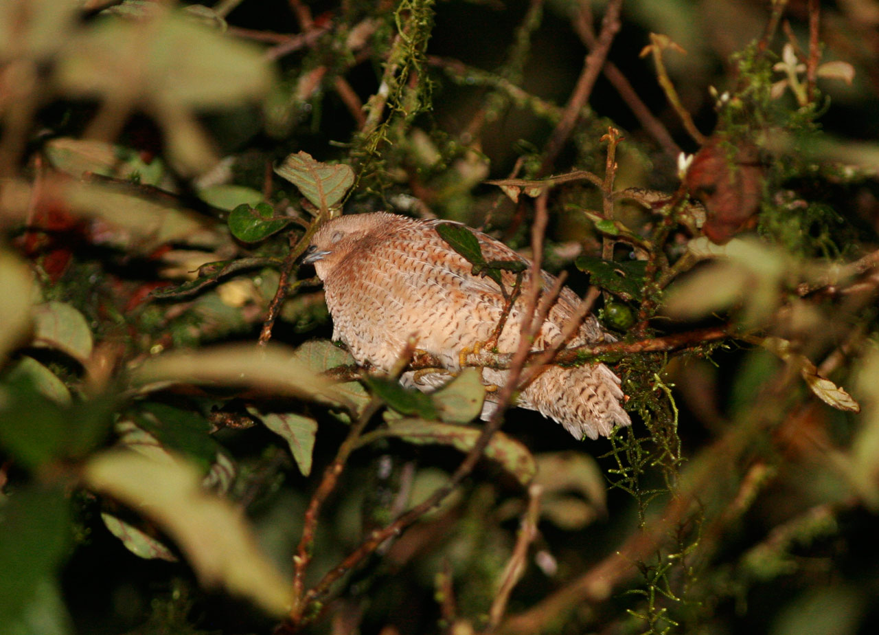 Beskrivelse: This ground dwelling species was flushed during a night walk through the rainforest. To our surprise it landed high up in a tree. Not exactly the expected behaviour of a quail nor the habitat of a Brown Quail wich prefers dense grassland.
