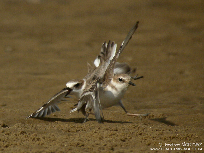 Beskrivelse: This two birds have got a strange comportment, during at least 2 hours, they were standing very closely turning around and attacking each other by a short fly over the head of the other bird. It seems that both birds are juvenil, presumably a male and a female, it could be a kind of training for the next year breeding season, maybe some displaying or territorial comportment. I will post a video soonly on www.tragopan-asie.com