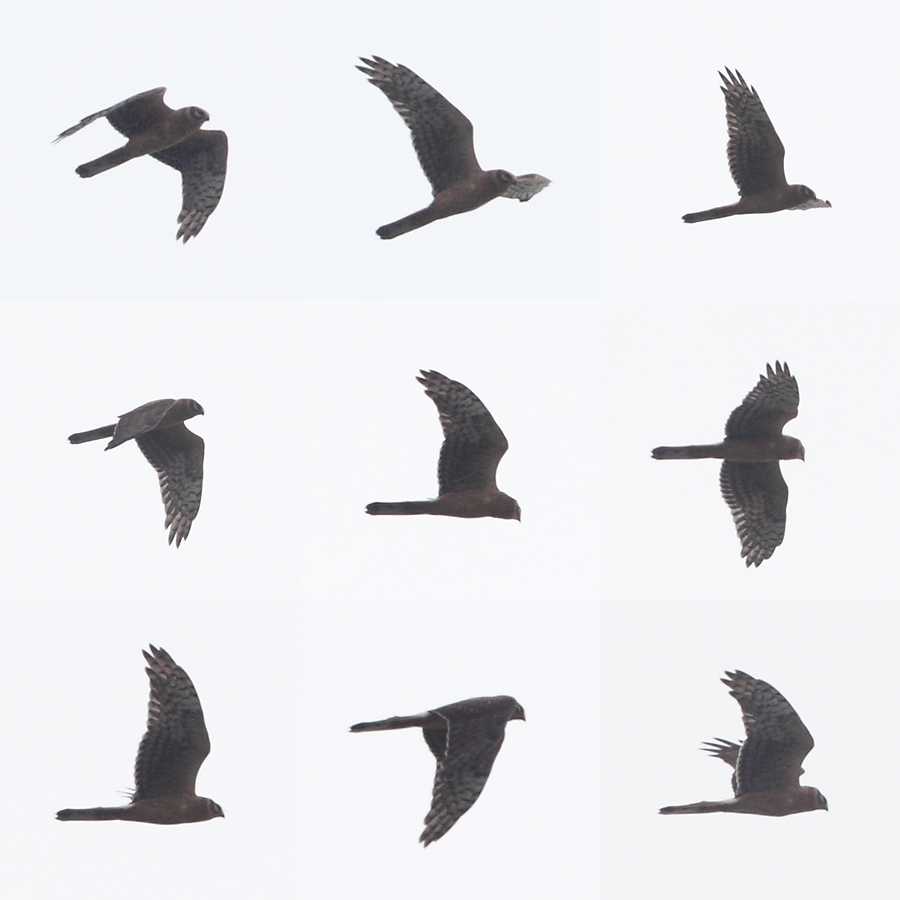Another not-so-typical harrier. Again, as in my earlier comment today, regarding another harrier on this site, I would like to focus on the anomalies of this alleged Pallid Harrier. I agree that it looks like a Pallid, and would probably pass as a Pallid in field for most of us, but the oddities are too many to accept it as a Pallid. The wing-formula and underwing are again in my opinion the most important areas to focus on. The 5th finger is actually quite well developed and is sticking out from the trailing edge of the hand even in active flapping flight, which is something you don't expect to find in Pallid, sometimes on soaring birds,yes. In some of the images (e.g. lower left) you can actually make out the emargination on the outer web of p6, again something that you don't get in Pallid, which has no emarginations on p6 =the 5th finger. On the other hand, the wing-tip is not broad enough for Hen, the 5th finger being too short and poorly emarginated. Apart from the wing-tip, the banding of the secondaries is too fine and the general colour too pale for an average Pallid, being much more similar to the average Hen Harrier. Also the primaries are barred similarly to many Hen Harriers, while the trailing edge looks poorly defined for a Hen, but this may be caused by the strong backlight.The head shows a strong collar, but the boa is streaked like in Hen (can be similar in Pallid too) and there is a lot of white around the eye, which is more typical of Hen than Pallid. Furthermore I think I can spot streaking on the flanks and in the underwing coverts (this can surely be verified by lightening up the images a little more), more so than can be accepted for a pure Pallid.