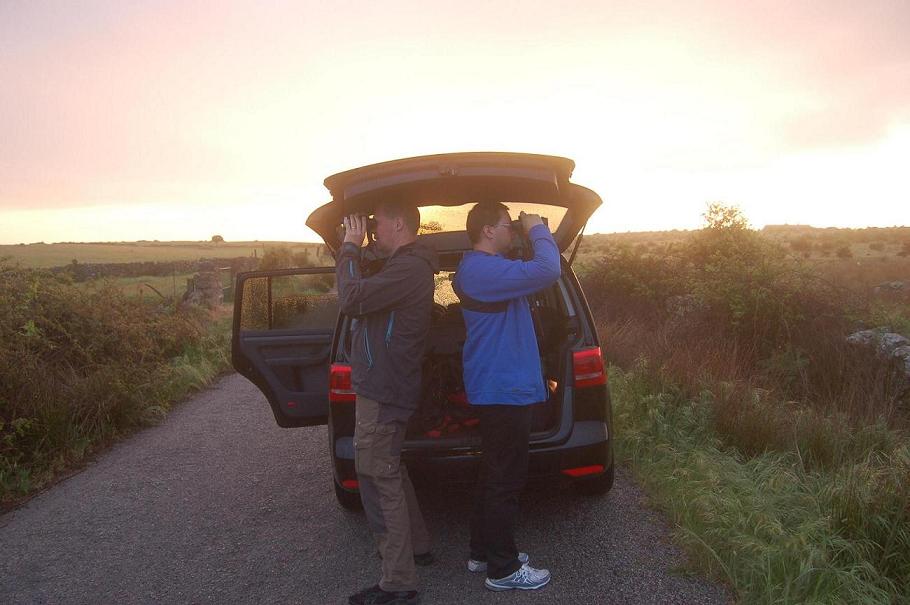 Ja, profil-billeder er jo sjældent flatterende, men heldigvis udviskes konturerne måske lidt af modlyset fra den opstigende sol :-) Paparazzier er åbenvart allevegne, men det skal nu ikke afholde nogen fra at tage til Extremadura og opleve hvad stepperne og Monfrague kan byde på. Det var Henriks 3. besøg, mit andet og fotografens første - men mon ikke vi alle havner der igen?