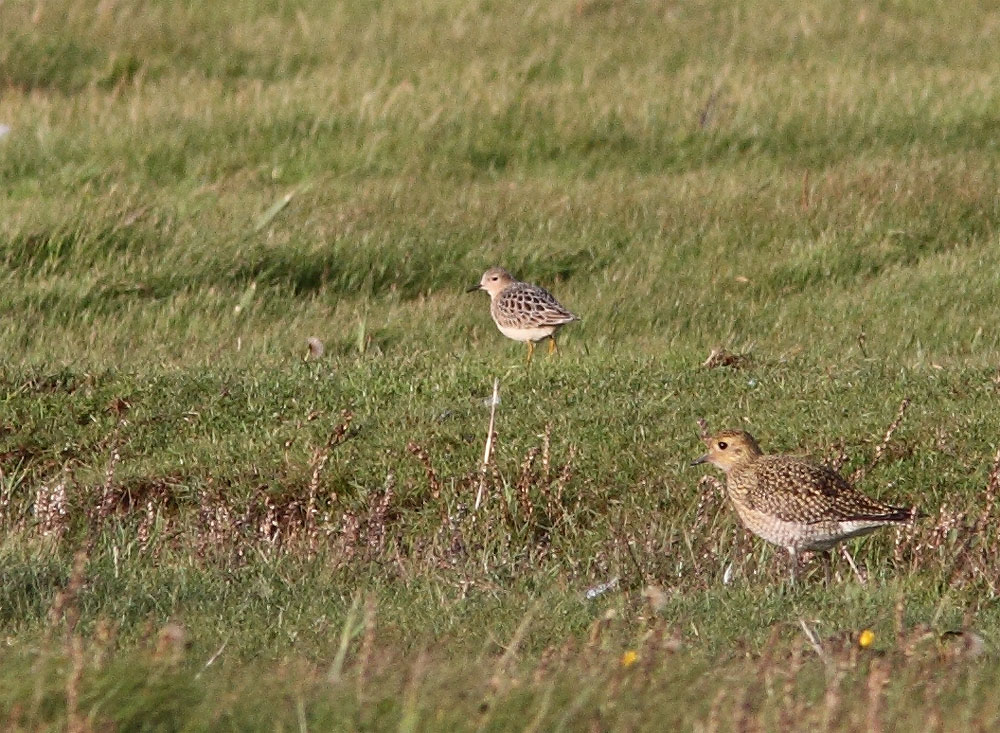 Beskrivelse: Onsdagens Prærieløber på Grønningen kunne også opleves torsdag. Fouragerede ivrigt i selskab med 3 hjejler på samme strandeng, som den blev fundet på onsdag, sydvest for diget ved Blåvand Zoo.