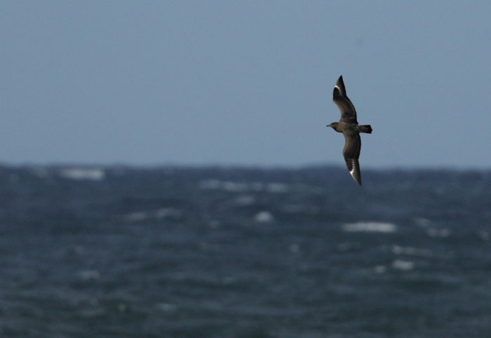 Fuglen dér er én blandt en del Storkjover, der trak forbi meget tæt på. De var alle megatykke, korthalede og bredarmede. Svært at tro at vi (25 mand) havde ladet en Mellemkjove gå som én af disse, så tæt på (tror jeg da...).