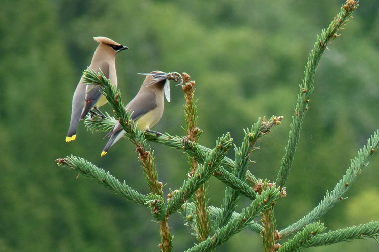 Beskrivelse: Ad har lige fodret juv med et fedt, flyvende insekt.