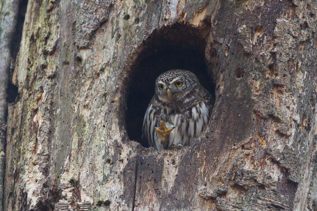 Uglen havde kløet sig under næbbet og jeg tog billedet da den var ved at sænke foden. Om den er til højre eller venstre skal jeg ikke kunne sige noget om.