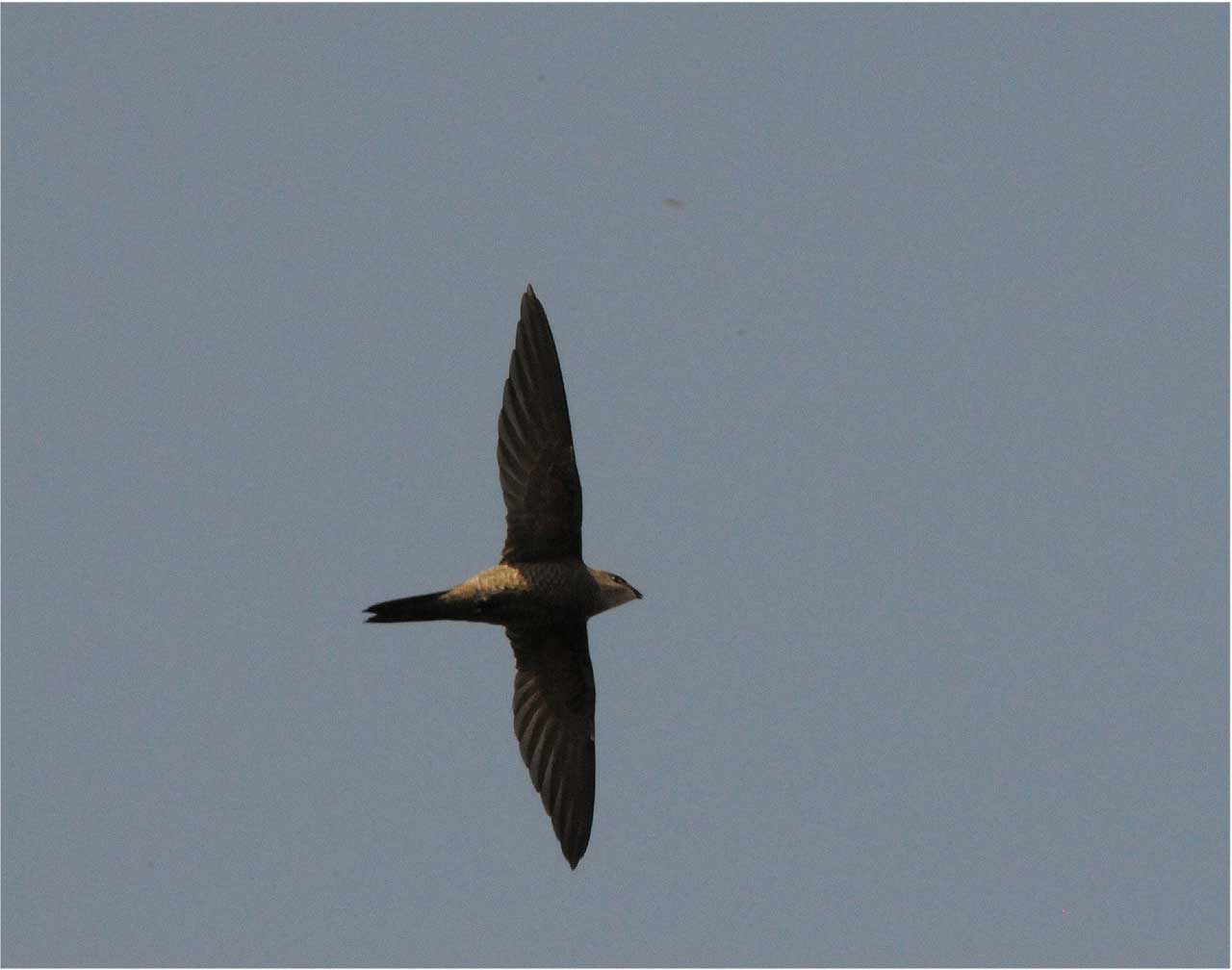 Billedet viser desværre ikke helt de/t kendetegn, der viser, at det er en Afrikansk Sort Sejler. For at vise det skal man kunne se oversiden og se at de inderste håndsvingfjer er lysere end kropsfjerene og de øvrige vingefjer. Efter udbredelsen er der kun 3 Apus-mursejlerarter at tage hensyn til: Mursejler, Nyanzasejler og Afrikansk Sort Sejler, mens Gråsejler ikke forekommer i området. Mursejler diskvalificerer hurtigt sig selv, da den ikke er så skællet på undersiden, selvom juvenile fugle samt underarten pekingensis har lyse kanter på kropsfjerene. Hvor længe de juvenile fugle beholder den dragt, ved jeg ikke, men tidspunktet på året udelukker vel denne.