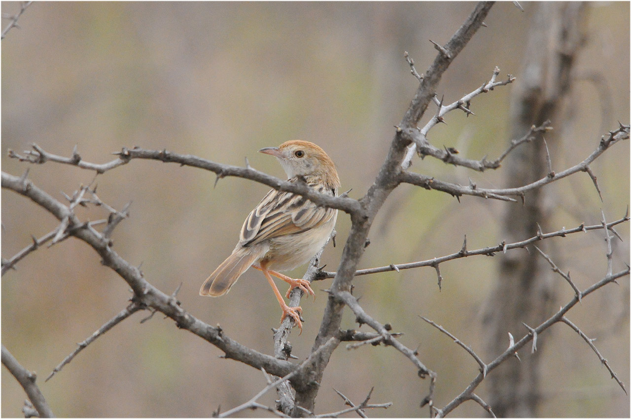 Denne cisticola har jeg bestemt til Akaciecisticola/Rattling Cisticola/Cisticola chiniana. Det danske navn fortæller om habitaten, mens det engelske hentyder til artens klaprende sang. Det videnskabelige navn er desværre uden forklaring og er måske et lokalt navn.