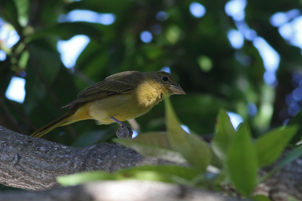 Summer Tanager har om vinteren ikke nær så lyst næb som om sommeren.