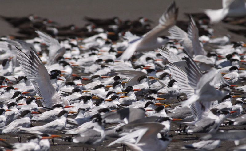 Titel: Flok visende variation i næblængde og farve. / Flock showing bill vatiations: lengts and colouration