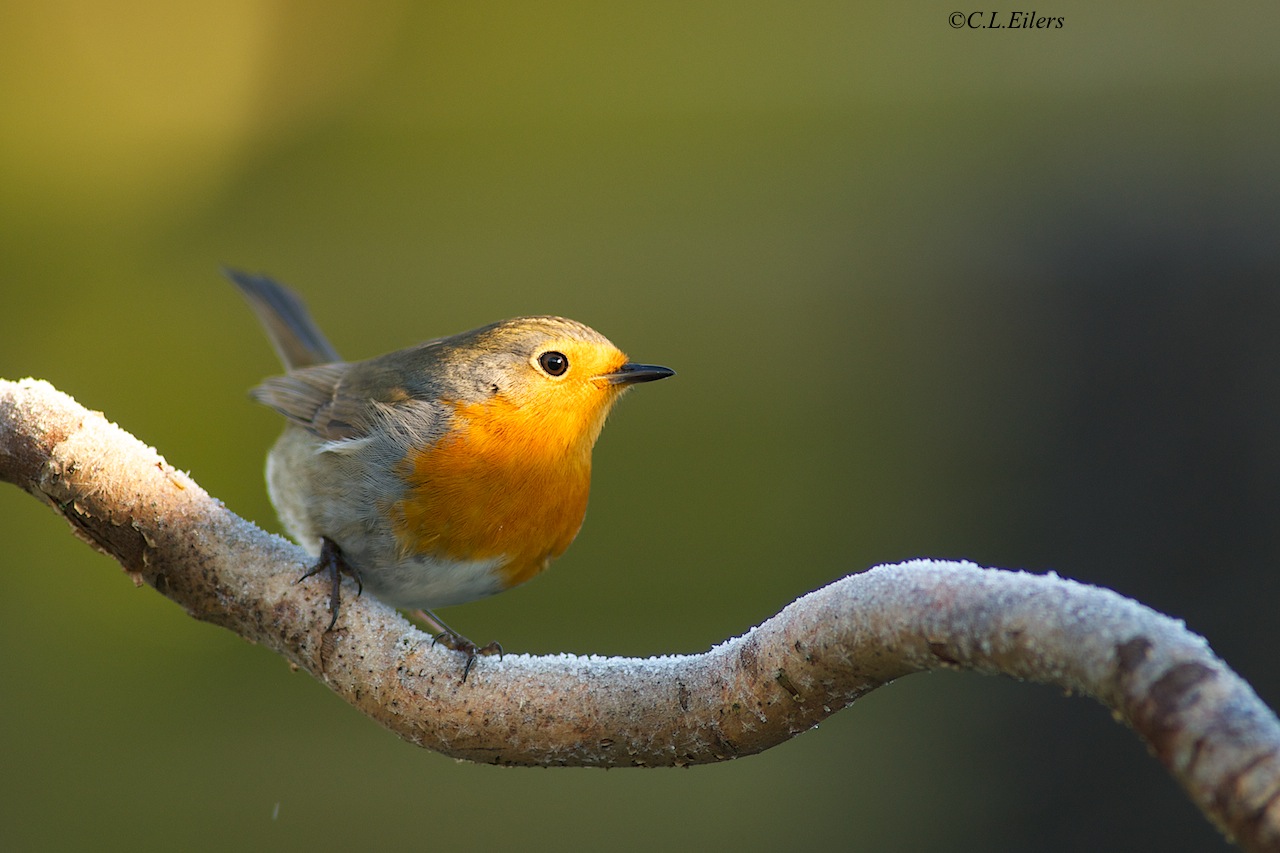 Beskrivelse: En Stor Flagspætte havde sat sig ved foderbrættet, men den var væk, da jeg var på plads med udstyr. Så det blev den trofaste Rødhals, der måtte agere model.