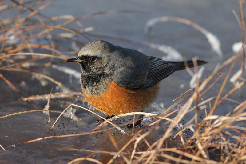 Beskrivelse: Fuglen var idag meget samarbejdsvenlig, det var nærmest som om den bevidst søgte hen til os a la Rødhals, som der også var flere af på samme isbelagte "indsø".
