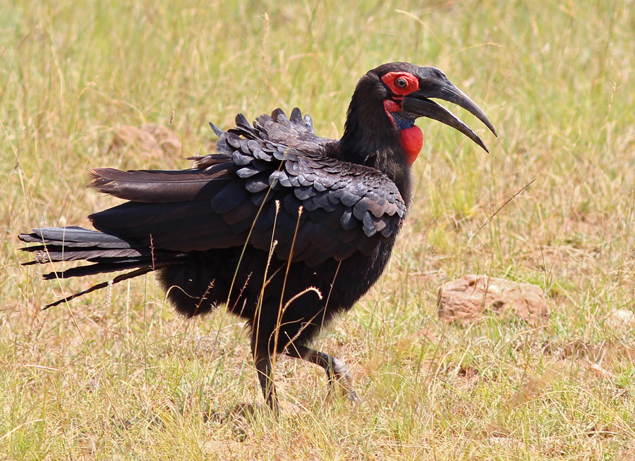 En af fugleverdenens mærkværdigste skabninger. Og svære at få at se! Man kan ikke blot lede dem op, men må forlade sig på tilfældet. Adstadigt spankulerende som ældre gentlemen i bushen, ofte en famile med far, mor og to børn, pikkende i jorden efter alt spiseligt, larver, termitter, firben, fugleunger, har de deres egne ruter. Pludseligt er de der - og så kan der gå dage, uden at man ser dem. De overnatter lavt i træer eller på toppen af et termitbo, hvor man kan være heldig at opdage dem på silhouetten i den korte skumringstid. I flugten er de imponerende med store, hvide vingefelter. I Sydafrika fåtallige, men mere almindelige i Botswana og især Zimbabwe.