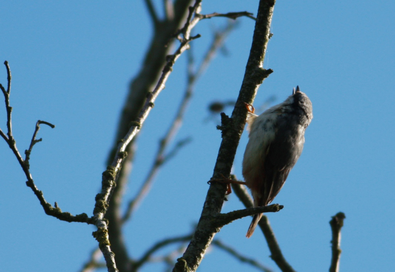 Beskrivelse: Jeg har i de senere år set spætmejser i det nordlige Vendsyssel, hvor jeg har haft mistanke om at der kunne være lysbugede fugle indblandet. Denne fugl blev set ved skoven ved Tversted Kirke, hvor den mørkbugede spætmejse er fundet ynglende de senere år. Dette er det eneste billede, jeg nåede at få af fuglen. Kommentér gerne på fuglens tilhørsforhold.