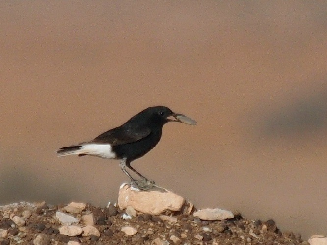 Som det andet billede er det Hvidkronet Stenpikker hér, da det sorte yderste halebånd mangler, den sorte kropsfarve er mere ren sort, end den mere sortbrune grundfarve på den større art, og det hvide på nedre bug strækker sig længere op mellem benene end hos Sørgestenpikker.