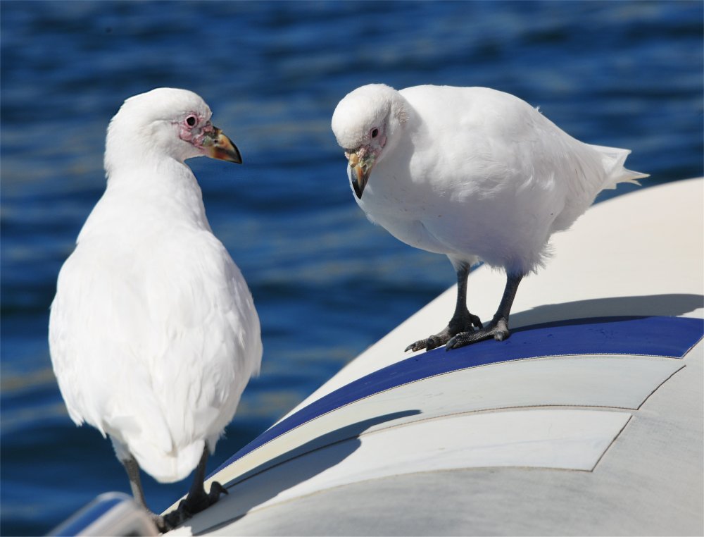 Beskrivelse: Fuglene kom flyvende ud fra an søløvekoloni hvor de lever af søløvernes affald. De var meget tillidsfulde.