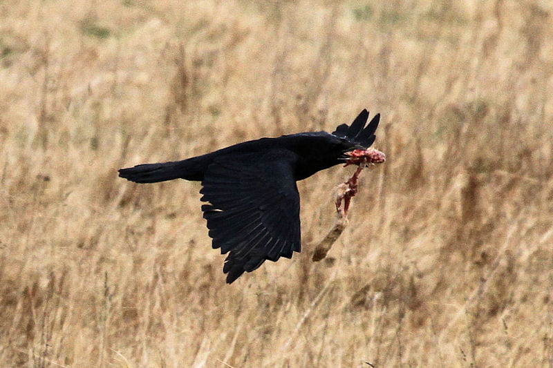 Beskrivelse: Sad længe og iagttog en fjeldvåge, som nød sin påskehare. To husskader var de første, som forsøgte at stjæle byttet. De blev jaget på porten, hvorefter to krager forsøgte sig. Også de måtte opgive. Ravnen derimod fik vågen til at vige. Efter lidt tid valgte ravnen at forlade stedet med sine tyvekoster. Dårligt lys, lang afstand, men oplevelsen står klart på nethinden.