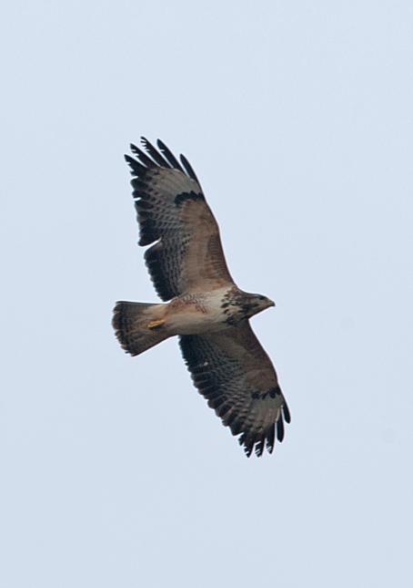 Hej Bo. Jeg har aldrig set en steppevåge, så jeg er ikke den der taler med mest vægt her. Alligevel synes jeg den ligner en almindelig musvåge, omend jeg godt kan erkende den rødlige farvetone. Jeg ville imidlertid forvente svagere tværbånding på svingfjerene, som ville få dem til at fremstå langt lysere, i stærk kontrast til den mørke bagkant. Jeg prøver lige om jeg kan linke til et par andre forårsfugle: