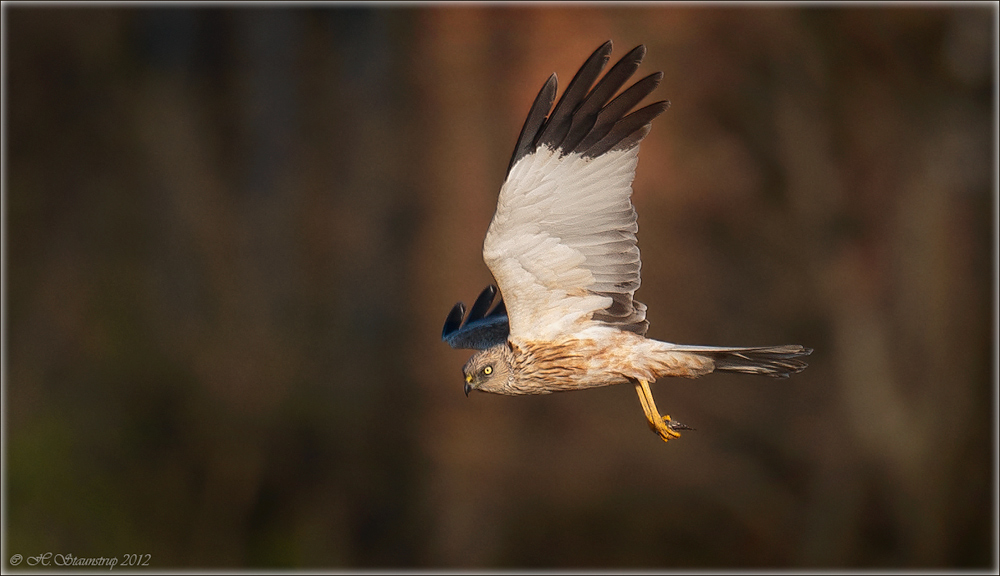 Beskrivelse: Travlhed over rørskoven når hunnen skal imponeres med bytte hvert femte minut.