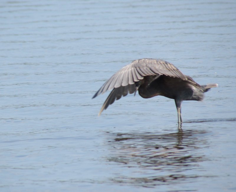 Beskrivelse: Reddish Egret fouragerer oftest som en hyperaktiv Hvidklire på hundestejlejagt, men kan også i korte perioder gøre brug af en version af parasol-jagt/canopy feeding, som hos den afrikanske Black Heron.