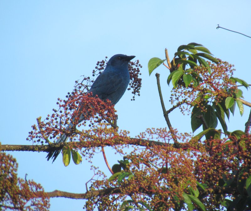 Beskrivelse: Området omkring La Esperanza var et godt sted at lede om morgenen, hvor flere fugle kom ud af skoven, for at fouragere på bær og frugter fra vejtræer.