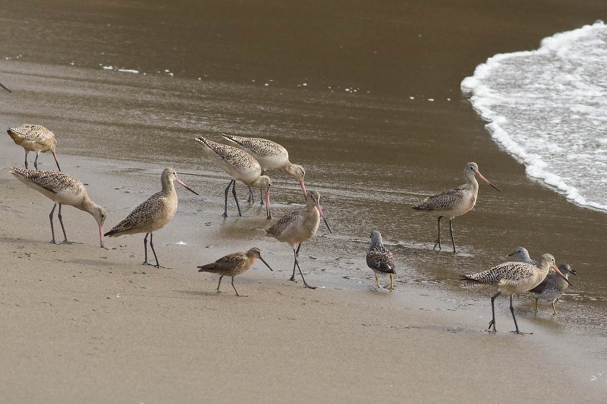 Titel: With Surfbirds and a Short-billed Dowitcher