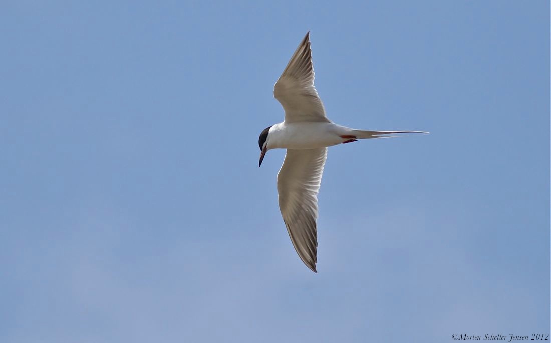 Näbben ser något smal (hirundo lik), och i det närmaste helmörk ut för forsteri i ad sommardräkt. gör man bilden ljusare ser man dock att en större del av innerdelen är rödaktig med bred svart spets. Övriga karaktärer - tex mörkt innerdel på stjärtspröten, vit kroppsundersida samt hp teckningen stämmer bra för forsteri. Bredden på det vita fältet mellan svart hätta och 'mungipan' framför ögat ligger inom ramen för båda.