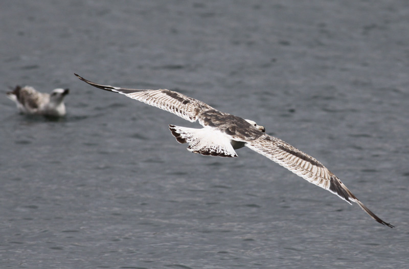 Beskrivelse: 3K Svartbag (= 2.sommer) er den mest spraglede af svartbagens dragter,med sine store kontraster mellem sort på ryg og dækfjer og stærkt afblegede lysere partier på dækfjerene. Næbbet på denne fugl er overvejende mørkt, mens andre i lignende dragt pp havde gult næb med sort bånd om spidsen og rød gonysplet.
