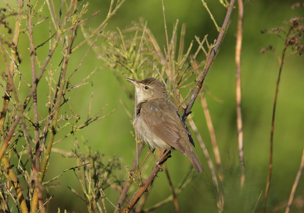Beskrivelse: I dag også helt utroligt usky. Dejligt at den ikke er skulky som kærsangeren. Jeg nåede at se den solbadet i det bløde morgenlys, inden det skyede til. Fascinerende at iagttage den fouragere, mens den synger - man opdager knap nok at sangen går i stå når et insekt skal sluges.