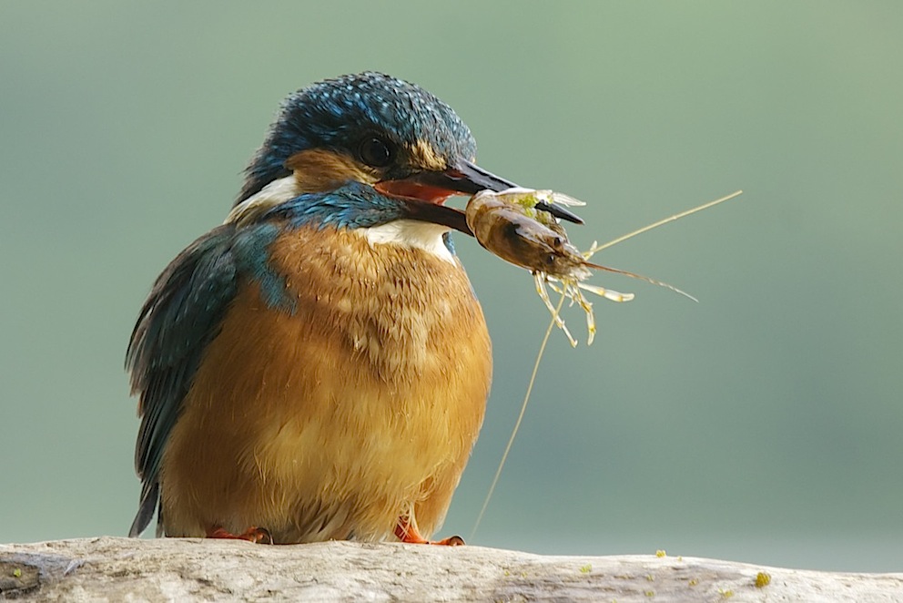 Beskrivelse: Her er den igang med Rejen.. Nogle af de Rejer den fanger er på det nærmeste næsten lige så store som fuglen selv ..