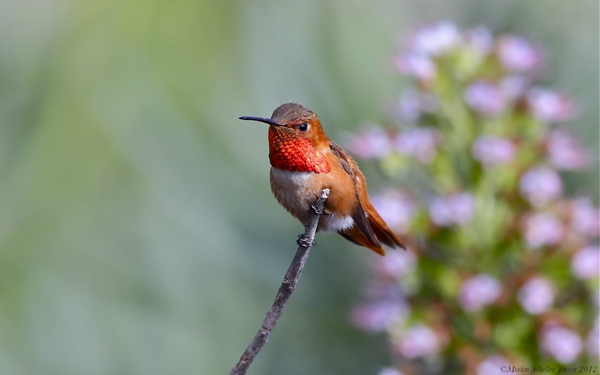 Er du sikker på at det ikke er en Rufous Hummingbird? Jeg synes, at den er lidt lovligt rødbrun på, hvad man kan se af ryggen.