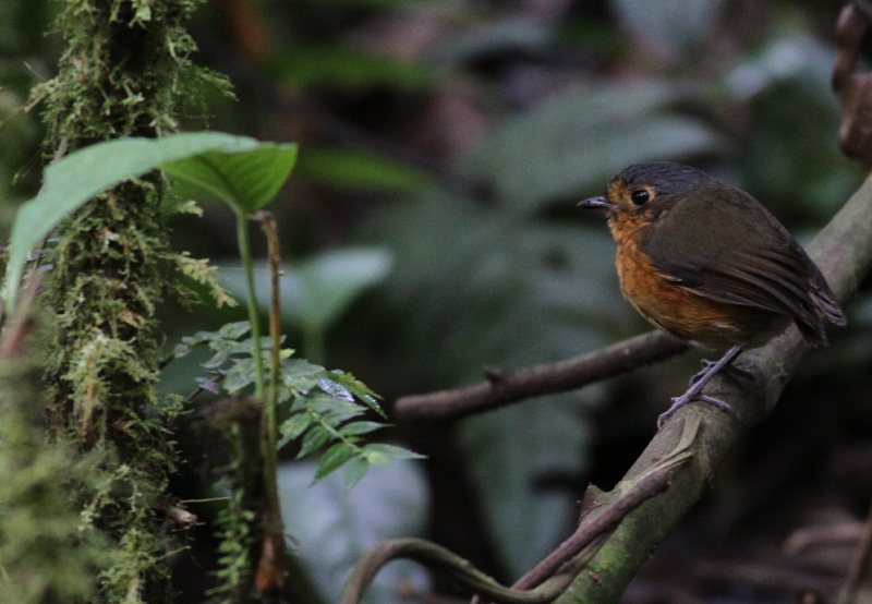 Beskrivelse: Det private reservat Gabriel Arange Restrepo - også kendt som Rio blanco - ligger tæt på storbyen Manizales og er et besøg værd. Antpittaer er normalt svære fugle, der lever skjult i halvmørke i junglen og kun vanskeligt lader sig se (selvom de er ganske vokale). På dette sted har man adobteret den metode, der også kendes fra Ecuador, og som må få puritanere til at slå korsets tegn. Man smider en gang om dage orme ud til fuglene, der således let lader sig bese. 5 arter er således tilgængelige i reservatet, hvoraf den lille Slate-crowned Antpitta dog er noget sværere, da den skal opsøges i selve junglens midte og ikke altid er sulten, når udfodringen foregår. Så meget smukkere er den charmerende lille fugl når det lykkes at få set den i naturlige omgivelser som her.