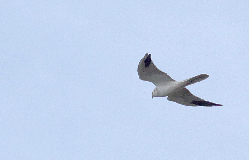 Fuglen havde i øvrigt de to yderste håndsvingfjer i vækst, hvilket forstærkede den smalle falkeagtige hånd i glideflugt.