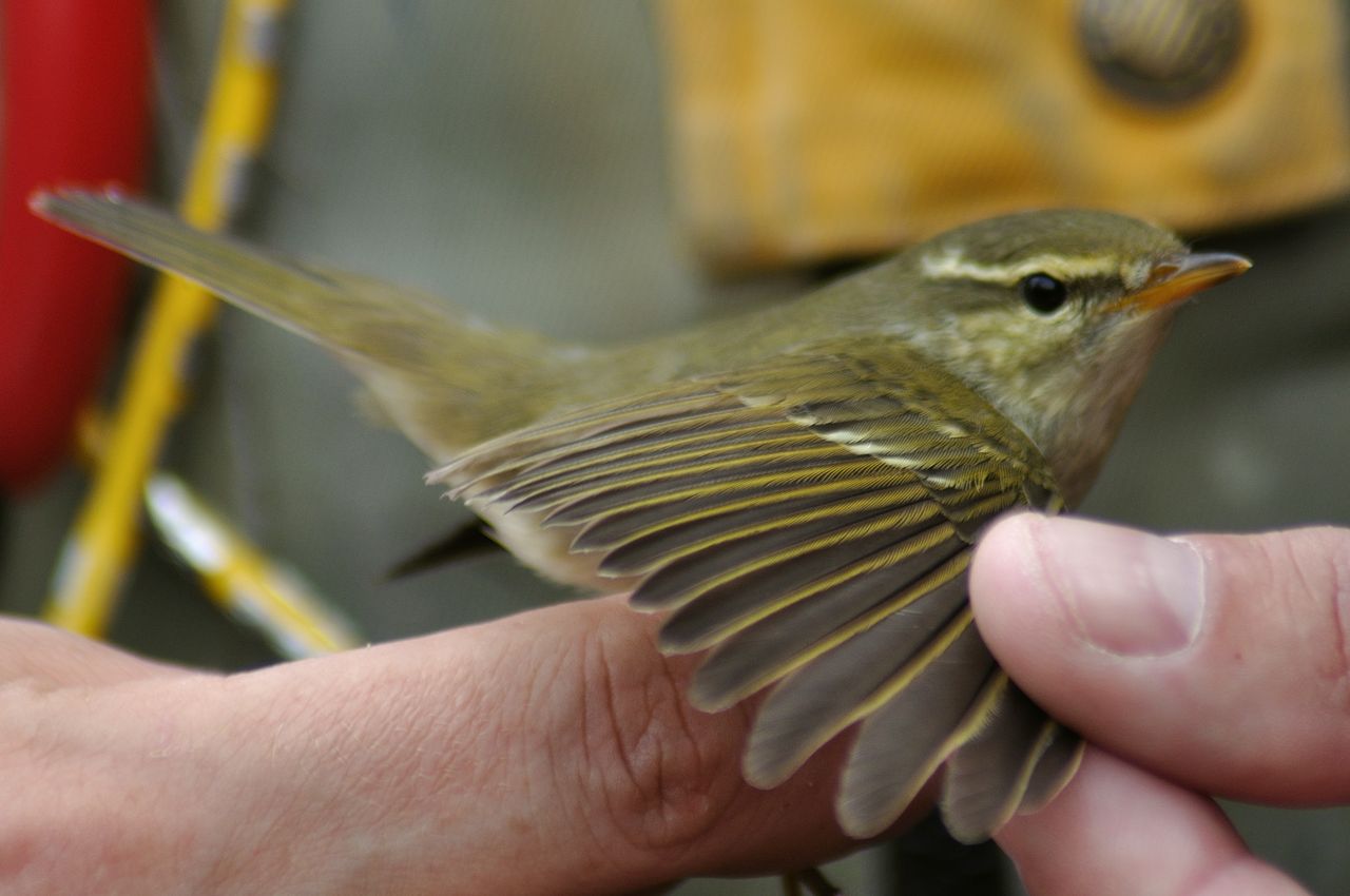 Beskrivelse: Synes det dobbelte hvide vingebånd bør vises med åben vinge også.