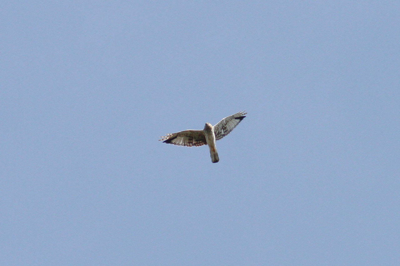 Beskrivelse: Blå Kærhøg han i en spændende og lidt 'farlig' dragt, der på afstand næsten kan give Steppehøgeassociationer. Fremstod kontrastløst bleg på afstand, men proportioner og flugt var klassisk Blå Kærhøg
