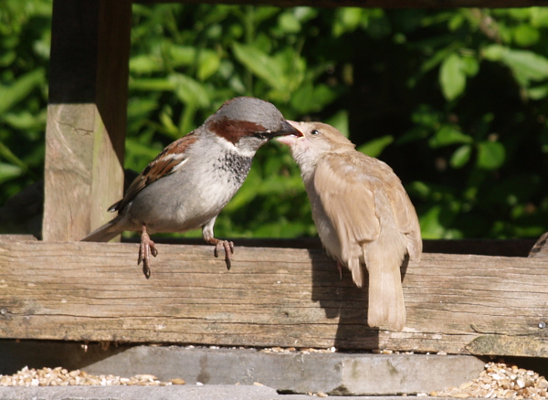 Beskrivelse: Billedet er taget gennem en rude. Havde 2 leucistiske Gråspurve i haven. En han Gråspurve og den ene leucistiske fugl fodrede ungerne, hvor af den ene også var leucistisk. Formoder derfor at de to fejlfarvede er en adult hun og en juvenil hun. I sommeren 2011 så jeg en lignende mutant i en have 200m fra min have.