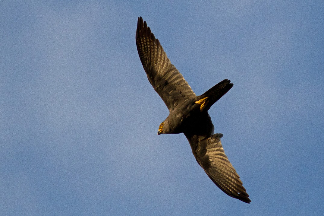 Beskrivelse: Masser af Sort Glente og et par Tårnfalke fangede termitter i luften - da denne Grå Tårnfalk sluttede sig til