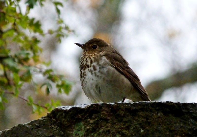 Dagen efter (30/10) havde vinden lagt sig, men det var gråvejr, og det småregnede det meste af tiden. Det var dog nemmere at finde fuglen - og se den godt - i dét vejr. Vi genfandt den ca. kl. 8.45 og så den flere gange godt bag snebærkrattet - og især ved et par lejligheder, hvor den frit fremme hoppede rundt på murene. Sidst på formiddagen gik vi i baggården.