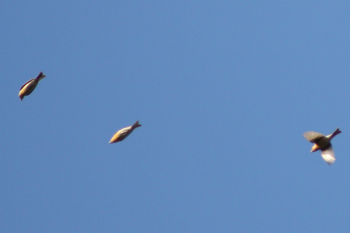 Beskrivelse: Hermed to fotos af Krognæb fra Nordmandshage 12/11-2012 - begge fotos er samme flok på 7 hunfarvede fugle, der trak syd kl. 13.05. I alt sås 62 trækkende Krognæb ved Nordmandshage 12/11-2012, hvilket er ny DK-rekord.