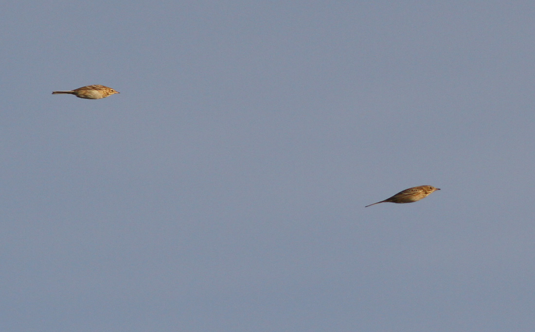Beskrivelse: Two Richard's Pipits passed by at the observation point late in the afternoon. Landed out on Måkläppen, but eventually came back and flew north.