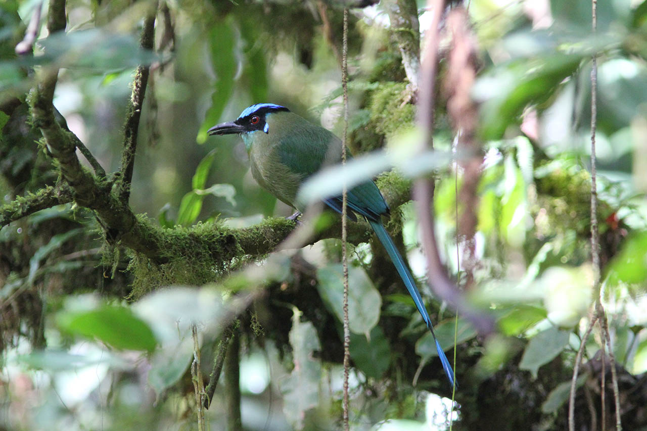 Beskrivelse: The long morning trek through the cloud forest of the Podocarpus National Park payed off. Highland Motmot is not only beautiful but also rare. Despite bright colors it easily disappears in the foliage. One of many great and rare birds seen this morning.
