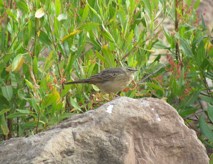 Fuglen opholdt sig desuden på en bevokset skråning med spredte stenblokke, hvilket er typisk Langnæbbet Piber-habitat.